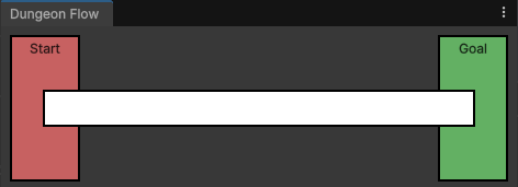 This asset has a lot of options, but for now we're only concerned with the flow graph. With the dungeon flow asset selected, click on the Open Flow Editor button in the inspector and you will be greeted with the basic default graph containing just a Start and a Goal node, with a single line connecting them.